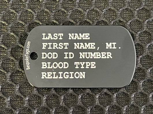 A pair of tags in the color of your choice, these customized tags will not only provide an easy way to share your information, they look great doing it! Out Traditional tags are based on the standard military issue tags used between 1975-2015, in our case they are engraved rather than embossed - making them much easier to read. This also allows both sides of the tag to be used.